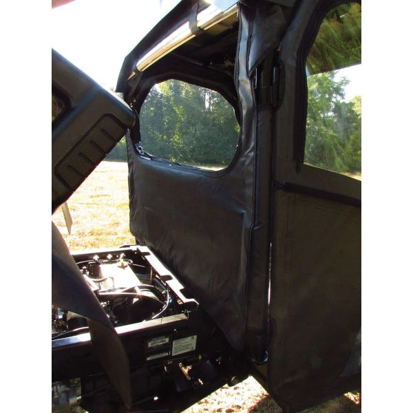 The doors have a frame made of .75″ diameter steel tubing, and they’re covered with heavy duty water and UV resistant fabric.